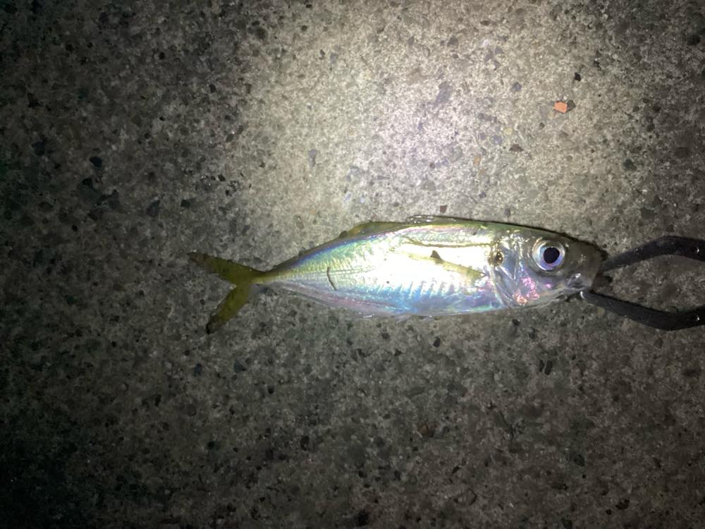 明かりの下にたくさん湧いていたアジは種類に確信が持てません