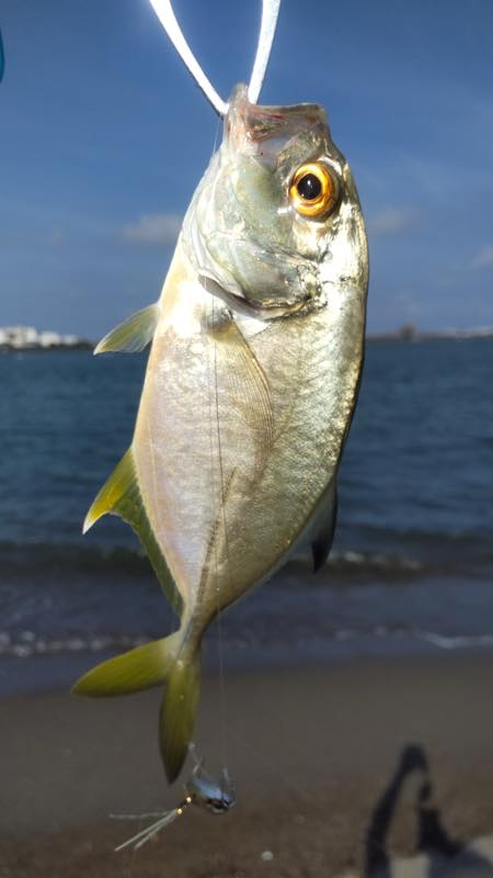 - 昼から八重川を探るものの反応がないため波が打ち寄せる大淀川を300mほど釣り歩きました。前日は清武川に行きましたが20cmのセイゴ1匹の釣果でした。数が釣れて楽しいのですが、どこに行ってもこのサイズしか釣りきれません。