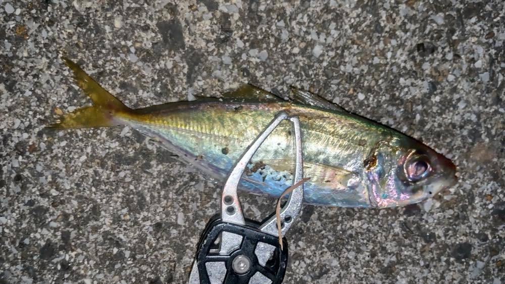 - コインランドリーの待ち時間暇だったので水面を覗くとアジっぽい姿が見えたため、急遽竿を出しました。強く合わせると口が切れ、2匹釣ったあとはスレてしまい慣れないアジングの洗礼を受けました。20cmオーバーも視認できるものの全く相手にされませんでした。