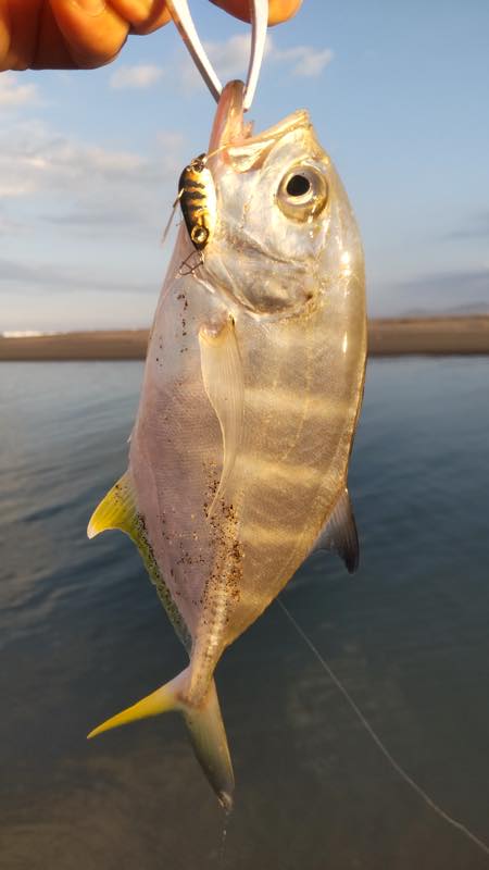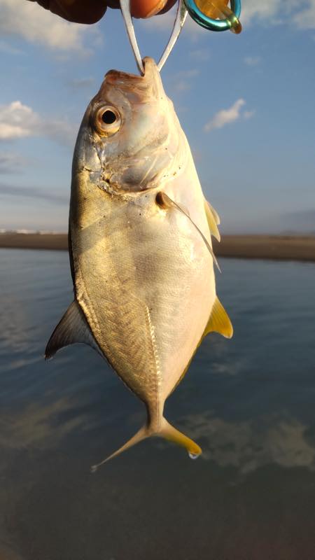 - 14時くらいから加江田川、知福川を探るものの15cm以下のコトヒキしか釣れず清武川に行きました。土管エリアから釣り下りやっと海近くでエバの捕食を発見し魚子メタル貫き、ソフトルアーなど投げまくっても釣れず、やっと(ひらり)で釣れました。