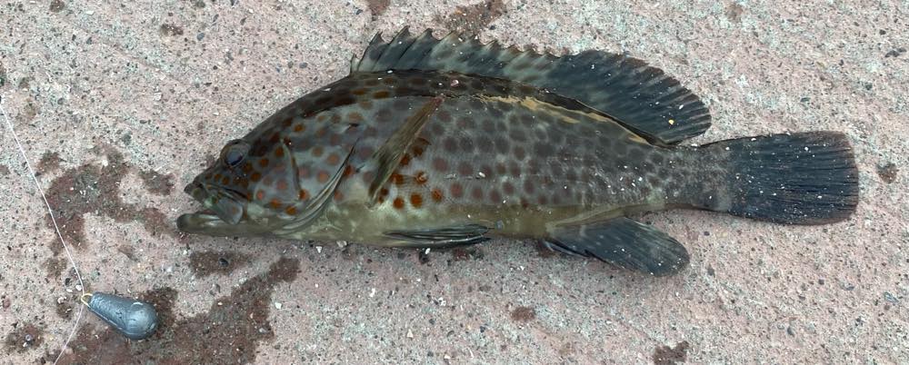 ブランカさんは南浦港内にて、ルアー釣り フリーリグでオオモンハタを釣り上げました!