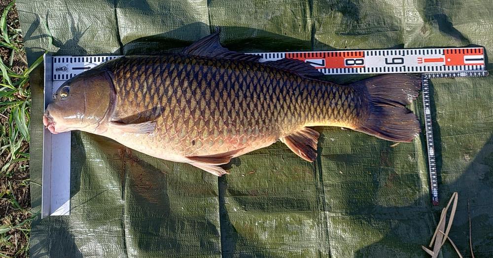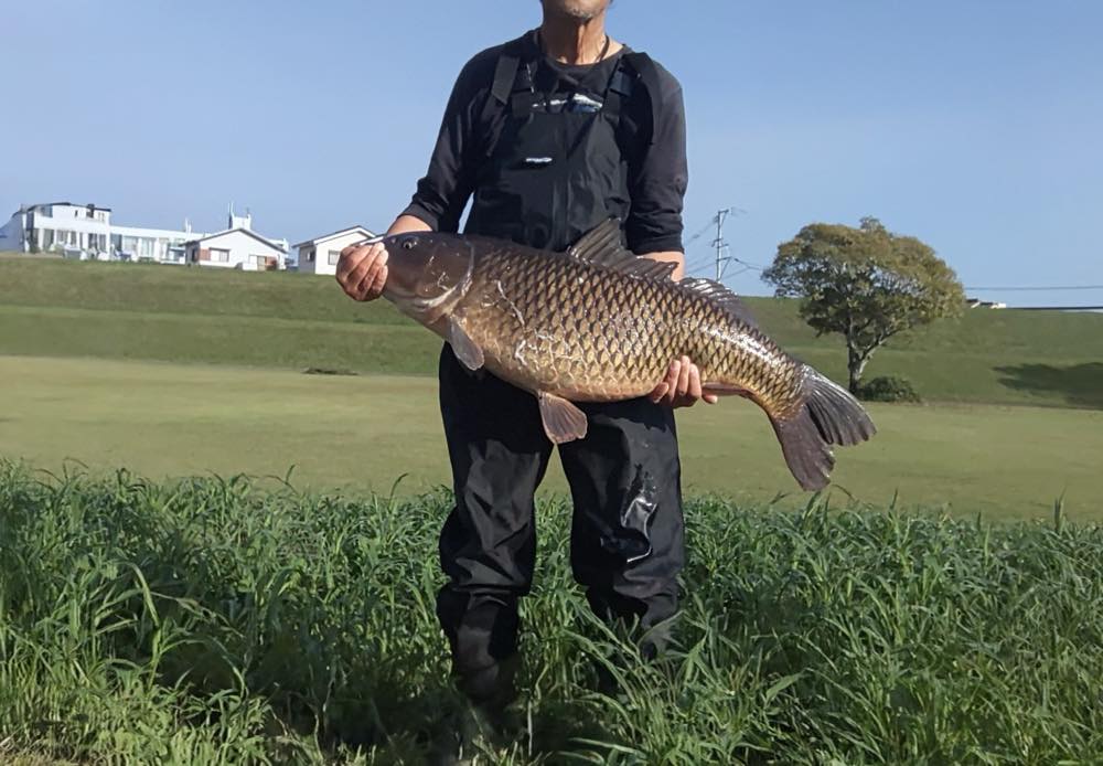 - 散歩で見つけた場所にデカい鯉がいたので朝早く竿1本とダンゴ1個とタモ網持って行ったら釣れました。まさしく狙って釣った1匹でしたがテトラ、コンクリートの柱や木杭のある最悪の場所で上げるのに下手の横好きさんや最近大淀川で105cmを釣られた一ツ瀬川のレジェンド岸さんや散歩の方々に手伝ってもらいました。ありがとうございました!