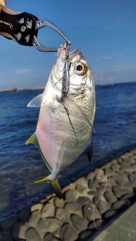 - 八重川合流の上流側が、いまいち良くなく(エバ2匹の釣果)思い切って八重川合流の下流側に行きました。波の来ない静かなエリアにいました。