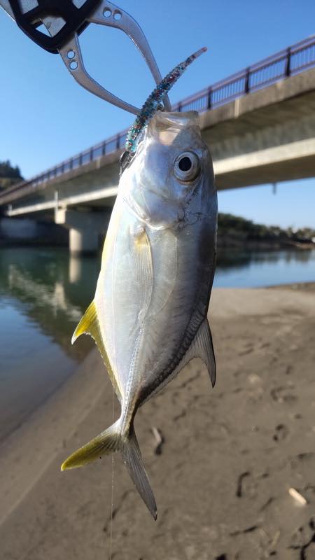 - 本日は昼食後に加江田川の鵜来橋から海まで釣り歩き当たりが無かったのでそのまま知福川を、こどもの国近くまで探ると橋近くでセイゴとエバが釣れました。その後知福川右岸を加江田川まで探るものの釣れず海まで行くと一面波打ち際で逃げ惑うベイトを発見!大物狙いでミノーを投げるものの釣れずいつものメタルジグとソフトルアーで入れ食い状態を久々に堪能しました。